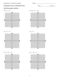 Graphing Lines in Standard Form Date_____ Period____ Sketch the graph of each line. ... Create your own worksheets like this one with Infinite Pre-Algebra. Free trial available at KutaSoftware.com. Title: Graphing Lines in Standard Form.ks-ipa Author: Mike Created Date: 9/5/2012 10:43:29 AM ...