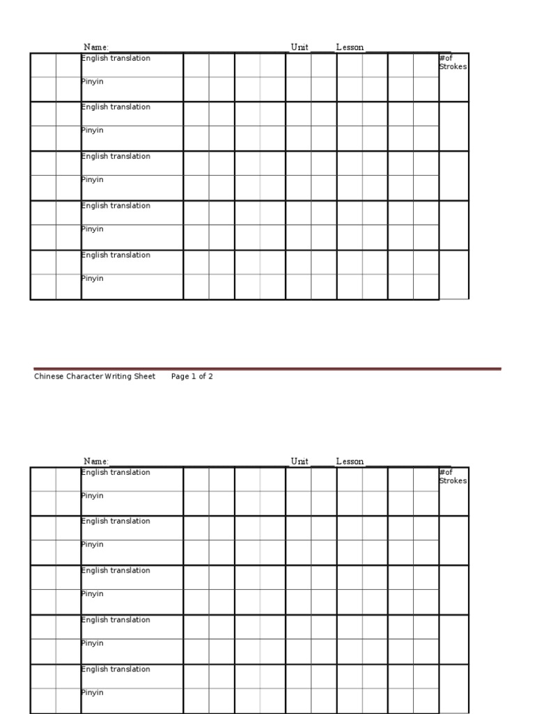 Aug 20, 2018 · Create Chinese Character Practice Writing Sheets. First of all, if you need a blank TianZiGe, simply print this .PDF file: Blank TianZiGe PDF. If your child has trouble with pin yin or character stroke orders, this online Chinese character practice writing sheet creator tool can help.