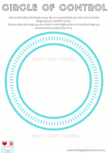 Printable circle of control worksheet. If you look at the worksheet you ll see that there are 3 circles of graduating sizes. Draw a smaller circle inside the big circle so that it looks a bit like a fried egg. Students can fill in the outer circle with examples of things we cannot control and the inner circle with the two things they can control.