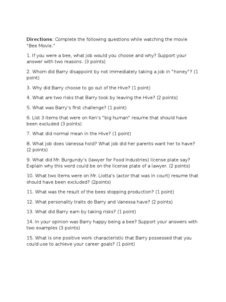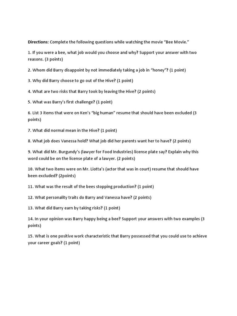 Bee movie worksheet answers