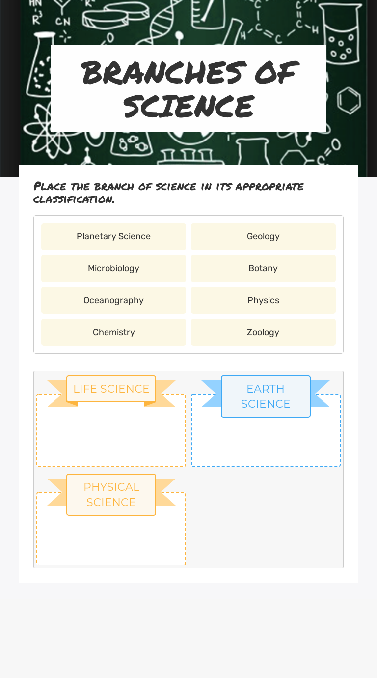 Branches of Science - Lesson Cards and Game. by. Adventures with a Purpose. 2. $1.99. PDF. Use this activity pack to introduce students to the various branches of science in a fun way. Lesson cards (22 sets) are in question-answer format. Print and use them as is, or cut them out to form 3x5 index cards.