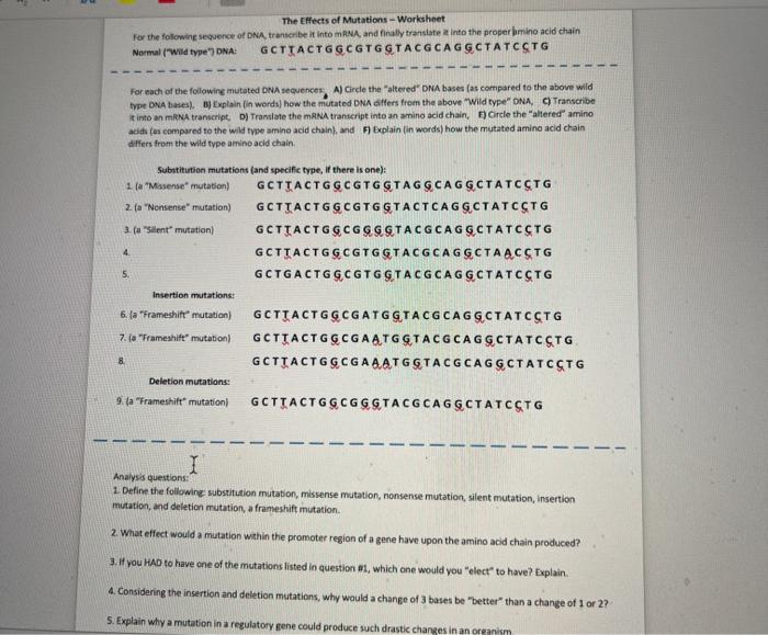 41 mutations worksheet 2 answers