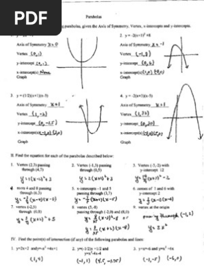 Parabola worksheet with answers.