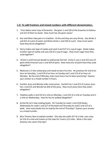 Print. Struggles with addition of fractions can easily be overcome if students practice the concept in a fun and engaging way! Students will get plenty of opportunities to work with word problems on addition of mixed numbers involving "add to" scenarios here. They will be required to comprehend the story situation and find the unknown quantity.