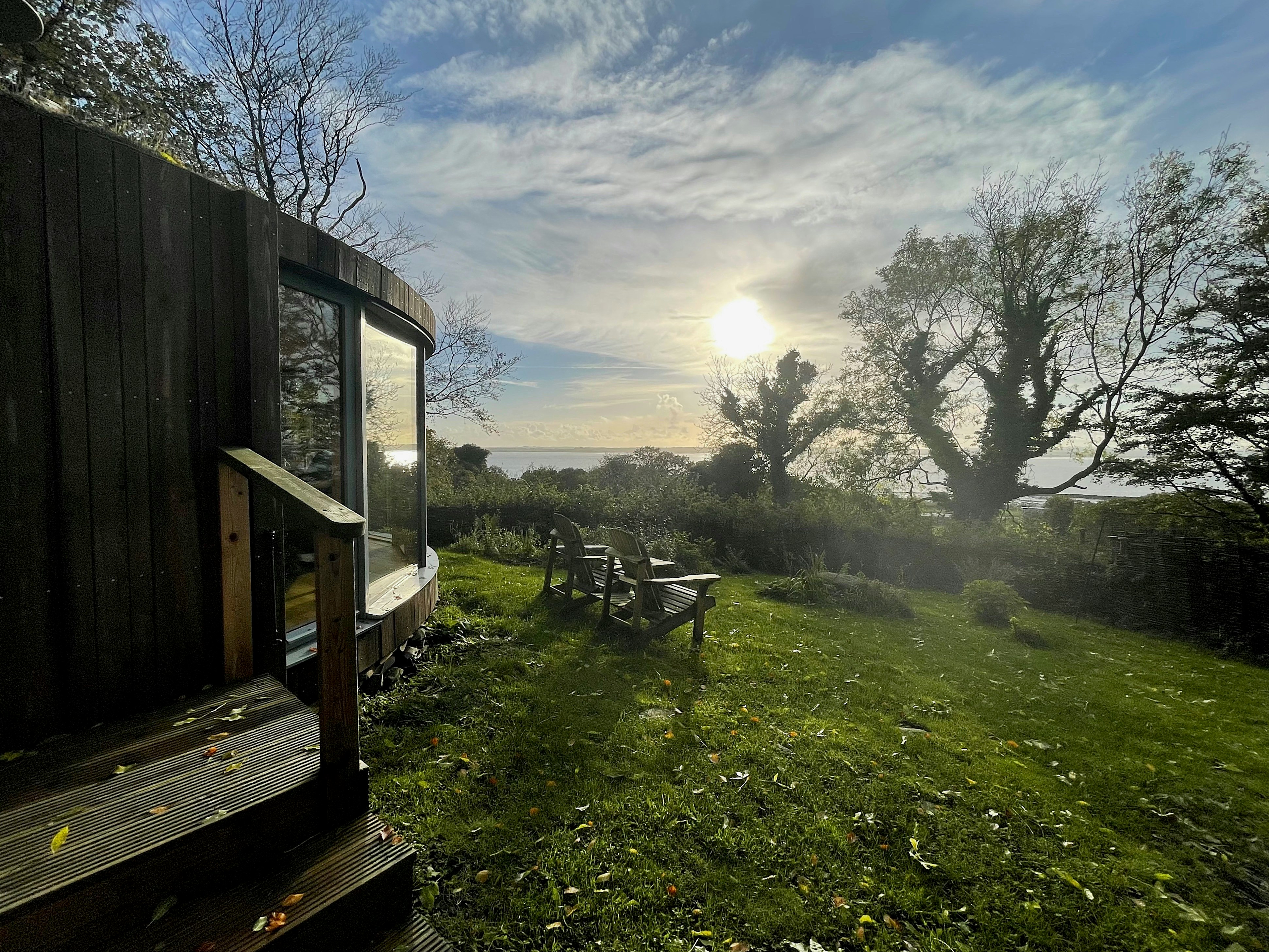The view from a little log cabin in Carsluith, Scotland, UK.