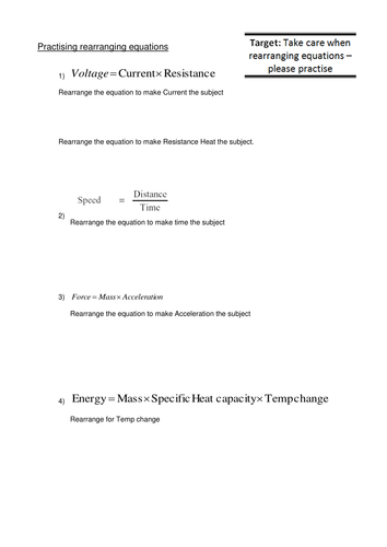Rearranging equations physics worksheet answers. This worksheet offer a chance to practise these skills. Joules kg m s ke 1 2 m x v2. Rearranging Equations Worksheet - KS3 GCSE. Practice worksheet students have trouble with the second half of the sheet. Create an equation by solving for the required variable.