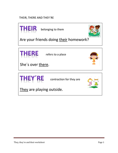 These worksheets start by asking students to identify which of the words (they're, there, their) would best complete the statement. We also have them fill statements by writing the words themselves. As we advance on students will write their own original thoughts while using these words in the correct context.