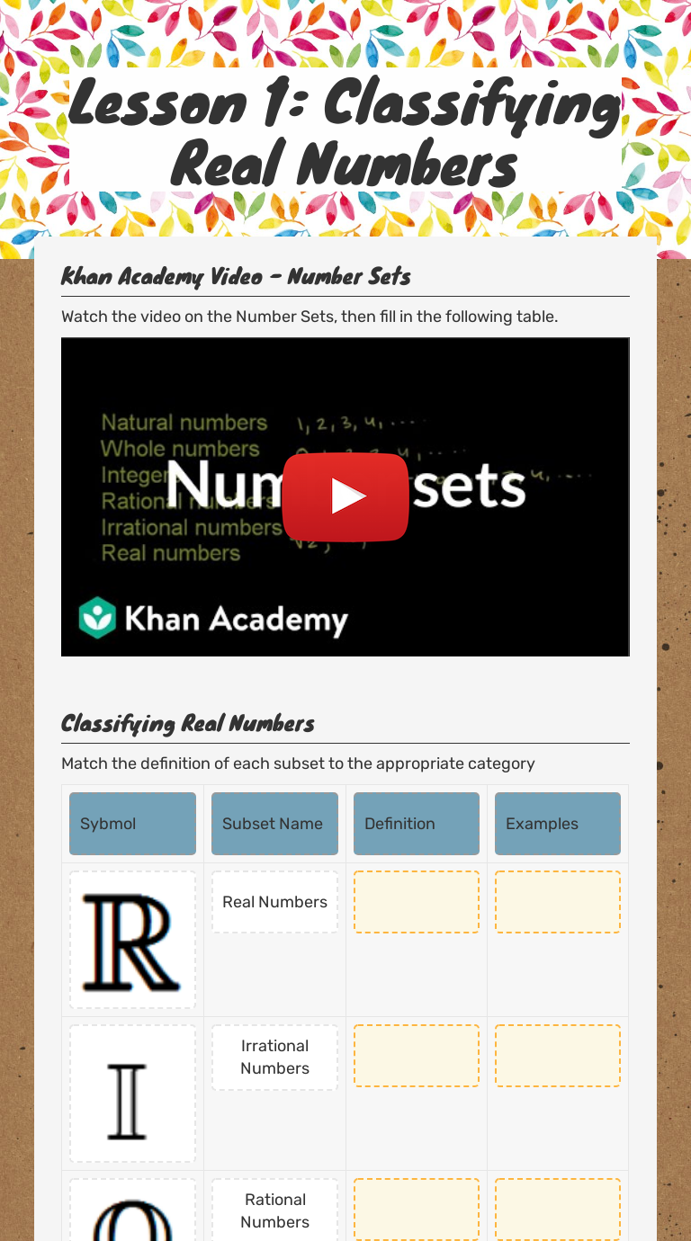 Classifying Real Numbers Worksheet. The Empiric Challenges of Ancestral Allocation Developed by Scott Bronson Grade Levels: 9-14Subject Matter: Biology, Anthropology, Genetics, GeographyTime Allotment: 2-3 chic sessionsDescription: This assignment will advice acceptance appraise their preconceptions and assumptions about ancestral categories and accept the impossibility of amalgam a constant ...