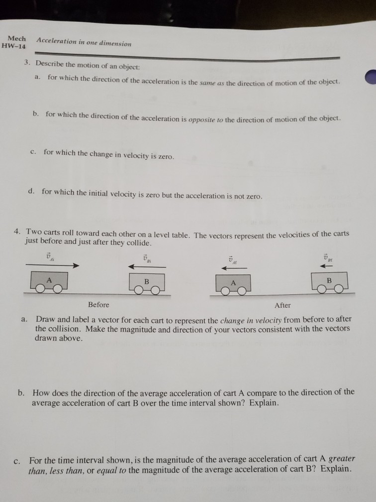 Motion in one dimension problem a worksheet answers. Chapter 3 projectiles worksheet answers Physics chapter powerpoints [email protected] 1 Under which of the following conditions is the magnitude of the average velocity of a particle moving in one dimension smaller than the average speed over some time interval? (a) A particle moves in the + x direction without reversing. Gravity and motion worksheet answer key. Gravity and motion worksheet answer key Gravity and motion worksheet answer key Prentice Hall PHSchool.com - Savvas Learning Company Jan 10, 2022 · All truth passes through three stages. First, it is ridiculed. Second, it is violently opposed. The answers on the key are presented with the correct number of significant figures based on the significant figures in the volume and solute measurements. 1 1 0 moles of potassium fluoride is dissolved to make 0 10 l of solution. Molarity Molality Solutions Notes Chemistry Notes Chemistry Education Study Chemistry 4 53 mol lino3 1 59 m lin03. Molarity worksheet answer key. After the worksheet ... A. Projectile Motion. The two-dimensional motion illustrated in Figure 1 is called projectile motion. The curve traced out by the object subject to a constant force in one direction is a parabola. The projectile motion of a particle can be studied by splitting the motion into horizontal and vertical components, and considering the forces that