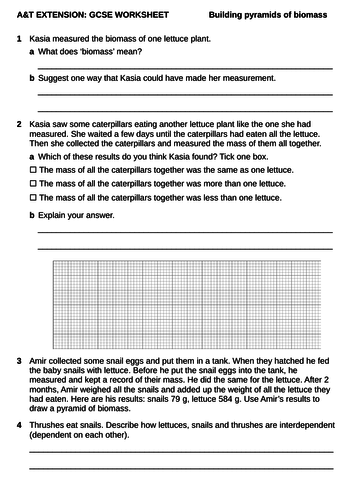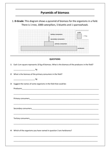 September 22, 2015 - An extra worksheet for students to practice drawing pyramids of number and biomass, they will need graph/squared paper to complete. The challenge is that they need to construct an appropriate scale for each. I created this for a low ability Y...