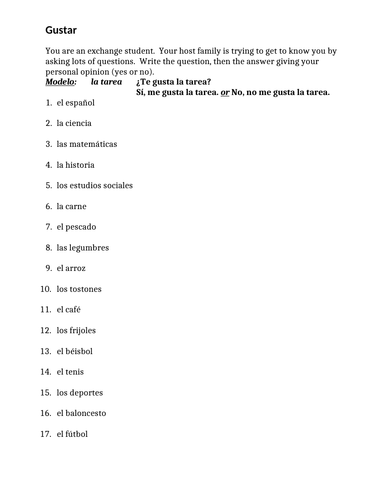 Results 49 - 72 of 417 — Browse verb gustar resources on Teachers Pay Teachers, ... with a verb bank; some questions have multiple answers (conjugations).