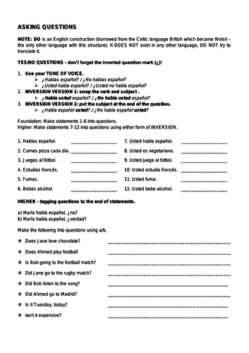 drop and drag question words to the appropriate question. ID: 417734. Language: Spanish. School subject: Spanish 1. Grade/level: high school level 1. Age: 12-18. Main content: Question words. Other contents: Add to my workbooks (3) Spanish question words worksheet pdf. These worksheets are mostly a list of questions for each step where you can write out your own personal answers to the questions. Song ser lyrics pdf word docx chapter 1. Telling time worksheet pdf word docx in class work. Worksheet 2 pdf word docx review worksheet.