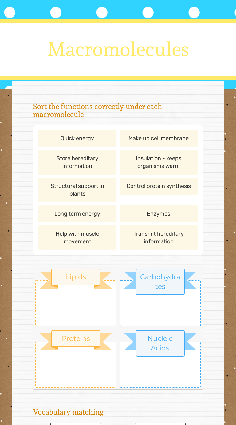 Macromolecules Worksheet Answers - worksheet Macromolecules worksheet answers. Other sets by this creator. 3 i can classify macromolecule according to their structure and function. High school food web worksheet answers. Building macromolecules activity answer key. Nucleic acids carbohydrates sugars and starches 1...