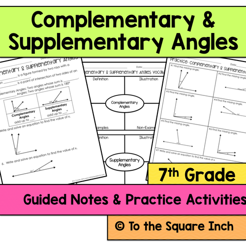 Complementary And Supplementary Angles Worksheets | TpT Complementary, Supplementary, and Vertical Angles Worksheets by Make Sense of Math 4 $3.00 PDF These supplementary, complementary and angles homework incorporate using equations to solve for an unknown in a figure. This is an important skill for your 7th grade and pre algebra students. These no prep worksheets are perfect to reinforce this concept.