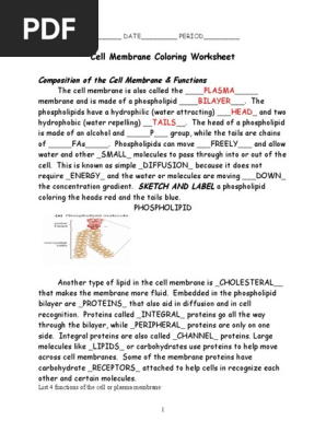 Cell Membrane Coloring ANSWERS.pdf Cell Membrane Coloring Worksheet. Composition of the Cell Membrane & Functions. The cell membrane is also called the plasma membrane and is.2 pages