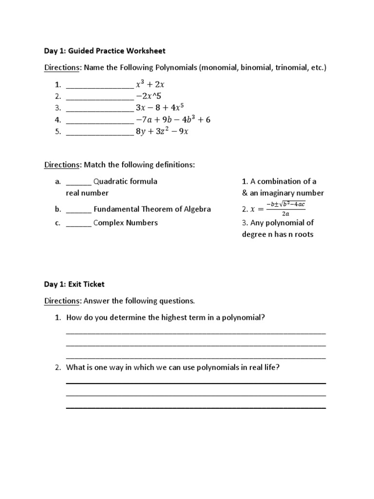 Fundamental theorem of algebra worksheet answers