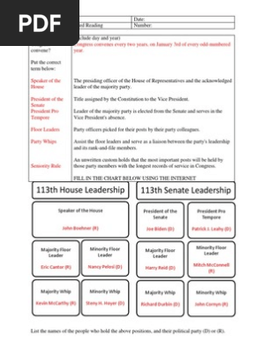 Congressional leadership worksheet answers
