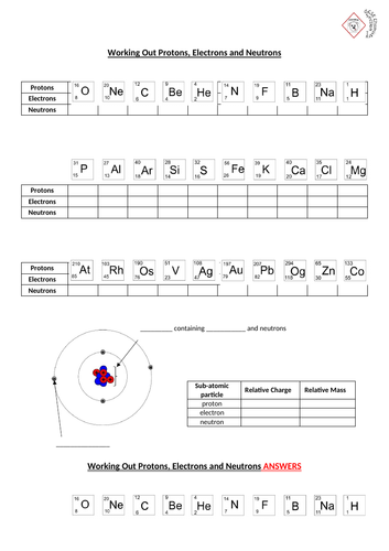 Calculating protons electrons neutrons | Teaching Resources Calculating protons electrons neutrons. Subject: Chemistry. Age range: 11-14. Resource type: Worksheet/Activity. 5 1 review. jack101023. 5 1 reviews. ... docx, 39.23 KB. Simple worksheet to calculate PEN for low ability. Creative Commons "Sharealike" Review. 5 Something went wrong, please try again later. catmol80. 2 years ago. report. 5 ...