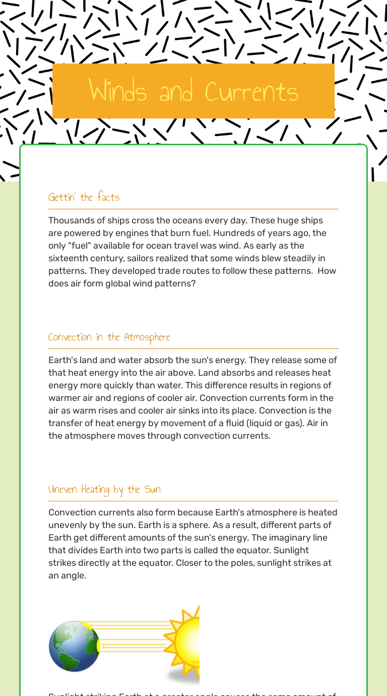 English worksheets: Global Wind Patterns Home > Other printables worksheets > Global Wind Patterns. Global Wind Patterns. This a lab that can be done in an Earth Science class. Level:intermediate Age: 13-17 Downloads:1. Copyright 11/2/2009 mrmomsmcmom Publication or redistribution of any part of this document is forbidden...