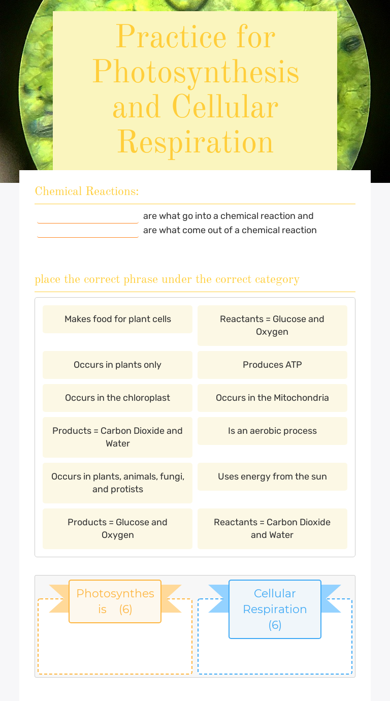 Photosynthesis And Cellular Respiration Worksheet Answer ... October 7 2021 on Photosynthesis Vs Cellular Respiration Web Worksheet Answer Key. Unused energy is stored as food by the plants. Answer each of the following questions in a clear and concise manner. 2 6 h 2 o glucose c 6 h 12 o 6 6 o 2 it is the reverse of the overall.