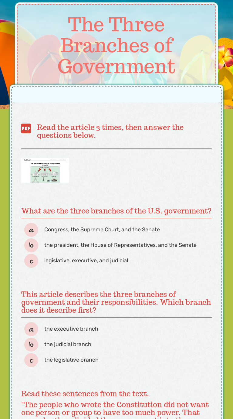 PDF 3 branches of government worksheet patriotic music The three branches of the government worksheet is a history exploration from layers of Teaching 4-1 on American government. Learners of learning is Hands-on experiments in every unit of this this Curriculum. More information on learning layers. The United States Constitution divides the federal government into three branches: PDF 3 branches of us government worksheets 2.a The United States National Government consists of three calls. 3.a The three branches of the United States government are, the Supreme Court, and the President. 4.a Congress consists of two groups called to the House of Representatives and of the. 5.a Congress Fa and passes. 6.A The Supreme Court is deposited on the laws.