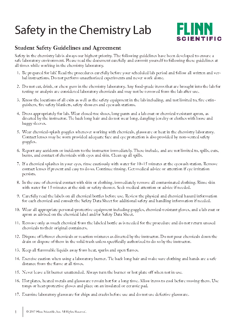 PDF Laboratory Safety Laboratory Safety Information for Students. Working in the lab can be enjoyable, but there are also risks to be aware of. The goal of this chapter is to Laboratory Safety Information for Instructors. This section is intended to serve as a reference collection of sources of information, not as answers to...