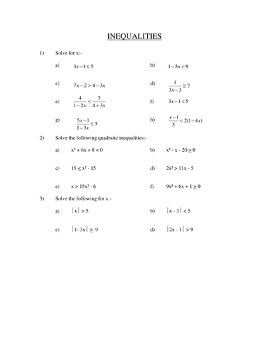 New 2015-03-18! Solving Linear Inequalities Mixed Questions (A) Math Worksheet #freemath PLUS 5 ...