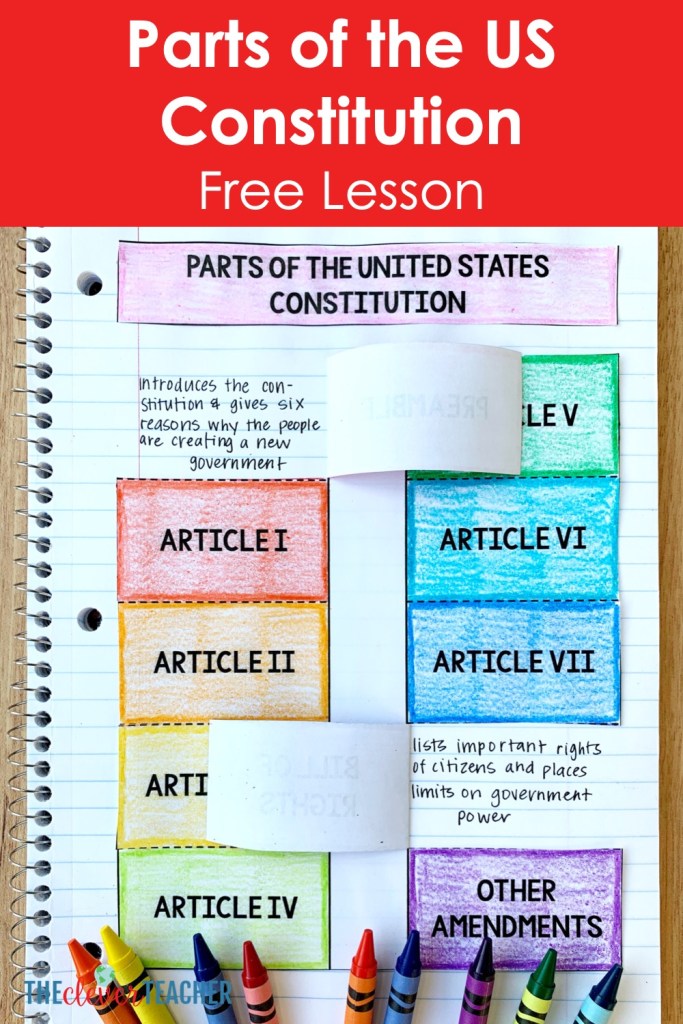 The Parts of the US Constitution (Free Lesson) I can explain the purpose of each part of the US Constitution. 1. First, pass out foldable graphic organizer to students (download the resource at the end of this blog post). 2. Next, explain that the US Constitution can be split into the following three sections: Preamble Articles Amendments