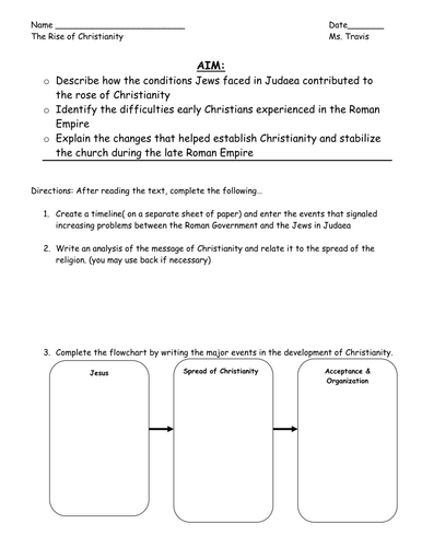› teachers › teaching-toolsArticles - Scholastic Article. How to Create a Culture of Kindness in Your Classroom Using The Dot and Ish. Use these classic books and fun activities to encourage your students to lift one another up — and to let their natural creativity run wild! The Rise Of Christianity Worksheet - Thomas nazario The Rise of Christianity Comprehension Worksheet Anglo from Teaching resources, unit 1, p. The Rise Of Christianity Worksheet. Why do you think jesus traveled to jerusalem when there was already so much tension between the romans and the jews? After reading chapter 6 section 4, rewrite each sentence to make it a correct statement. rome.mrdonn.org › activitiesAncient Rome Activities and Projects for Kids and Teachers ... Play Free Interactive Online Games about Ancient Rome. Interactive Quiz Questions with Answers about Ancient Rome by Topic . Ancient Rome Five Themes of Geography. Early Ancient Rome - The Founding and Kingdom. Ancient Rome - The Roman Republic. Ancient Rome - The Roman Empire. Daily Life in Ancient Rome. Ancient Roman Entertainment PPT Chapter 5 Ancient Rome and the Rise of Christianity Chapter 5 Ancient Rome and the Rise of Christianity * Christianity Romans allowed Jewish people to worship their one god Many Jews reluctantly lived under Roman rule, however, some wanted a revolt against Rome and believed a messiah would come to lead their people to freedom Christianity Romans allowed Jewish people to worship their one god Many Jews reluctantly lived under Roman rule, however ...