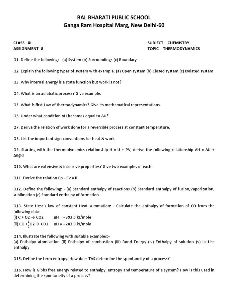 Gibbs free energy worksheet. Freezing and Boiling Points - CliffsNotes Energy and Entropy; Quiz: Energy and Entropy; Gibbs Free Energy; Quiz: Gibbs Free Energy; Introduction to Thermodynamics; Quiz: Introduction to Thermodynamics; Answers to Chemistry Problems; Online Quizzes for CliffsNotes Chemistry QuickReview, 2nd Edition Peng-Robinson Equation of State - an overview - ScienceDirect Pure component parameters in Eq. (6.149) are calculated from the above properties with equations in Table 6.3 for both values of a.To determine the excess Gibbs energy for each EoS, Eq. (6.126) is used at a given T, P, and composition (x 1, x 2). Values of a from the SRK EoS with van der Waals mixing rules and values of a from the SRK EoS with the Huron–Vidal mixing … Drawing Free-Body Diagrams - Physics Classroom Diagram the forces acting on the combination of gymnast and bar. A free-body diagram for this situation looks like this: Return to Questions. Return to Info on Free-body diagrams. Return to on-line Force Description List . 3. An egg is free-falling from a nest in a tree. Neglect air resistance. A free-body diagram for this situation looks like ... Gibbs Free Energy - Purdue University The Gibbs free energy of a system at any moment in time is defined as the enthalpy of the system minus the product of the temperature times the entropy of the system. G = H - TS. The Gibbs free energy of the system is a state function because it is defined in terms of thermodynamic properties that are state functions.