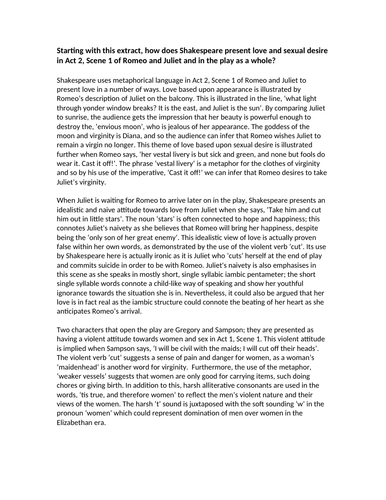 Romeo and Juliet Act 1 worksheet questions - summarystory.com Romeo says A madness most discreet, a choking gall and preserving sweet, he is talking about. " O, she doth teach the torches to burn bright!". "My grave is like to be my wedding bed.". From the prologue, Juliet foreshadows the play's ending when she says…. The servants who appear in Act 1….