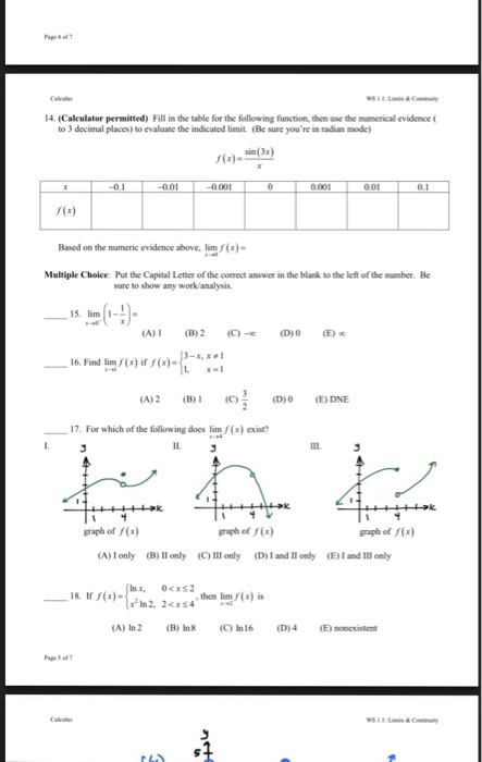 43 limits and continuity worksheet with answers