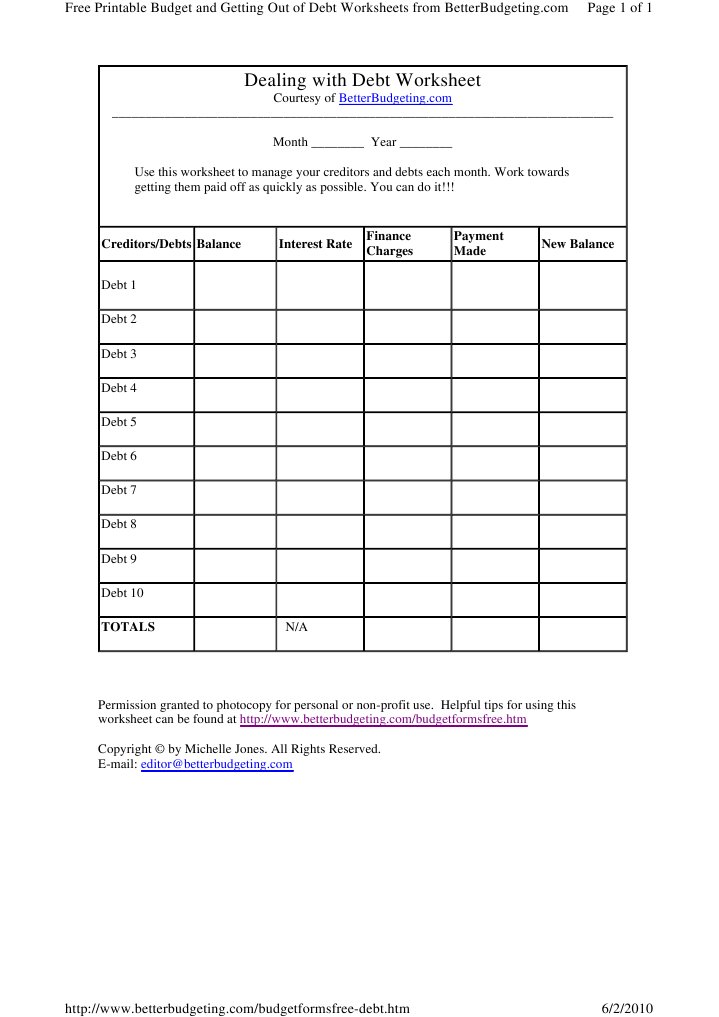 Debt Payoff Printable Worksheet {FREE} - Savor + Savvy Step One: Collect all of your current outstanding debt that charges interest. I usually don't count the mortgage, but you certainly can. Usually, the interest on the mortgage is much less than other consumer debt. Step Two: Fill in each section of the Debt Payoff Printable. There is room for two Payees for each sheet. Insolvency Worksheet | SOLVABLE 1 Canceled Debt as Income 2 The Insolvency Exception 3 Insolvency Worksheet 4 What Counts as Assets 5 Reporting and Calculating Insolvency Canceled Debt as Income When a debt (such as a credit card or a loan) gets canceled, the debtor must report the canceled debt as income.