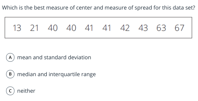 Measures of center worksheet answers. Converting Between Centimeters and Meters (A) - Math-Drills Welcome to The Converting Between Centimeters and Meters (A) Math Worksheet from the Measurement Worksheets Page at Math-Drills.com. This math worksheet was created on 2021-10-04 and has been viewed 23 times this week and 73 times this month. TSI Math Practice Test (updated 2022) - Mometrix Compute and interpret measures of center and spread of data Classify data and construct appropriate representations Analyze, interpret, and draw conclusions from data A college-ready score on the Diagnostic test is 6. Your Diagnostic test score, combined with your CRC score, determines your certification as "college-ready" or "not college-ready." Measures of Central Tendency MCQ [Free PDF] - Objective Question Answer ... Measures of Central Tendency MCQ Question 1 Download Solution PDF What is the mean of the range, mode and median of the data given below? 5, 10, 3, 6, 4, 8, 9, 3, 15, 2, 9, 4, 19, 11, 4 10 12 8 9 Answer (Detailed Solution Below) Option 4 : 9 India's Super Teachers for all govt. exams Under One Roof FREE Demo Classes Available* Enroll For Free Now Distributions: How to Descrribe Distributions in AP® Statistics | Albert.io Below is a preview of the main elements you will use to describe each of these concepts. In the following sections, we'll explain each of these terms one by one. 1. Center a. Mean b. Median c. Mode 2. Shape a. Symmetrical vs. Skewed b. Unimodal vs. Bimodal 3. Spread a. Range b. IQR 4. Outliers a. Are they any?