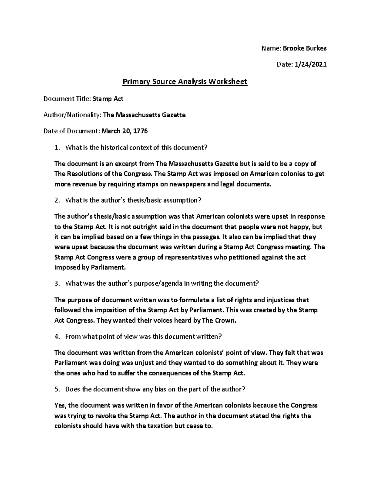 The stamp act worksheet answers
