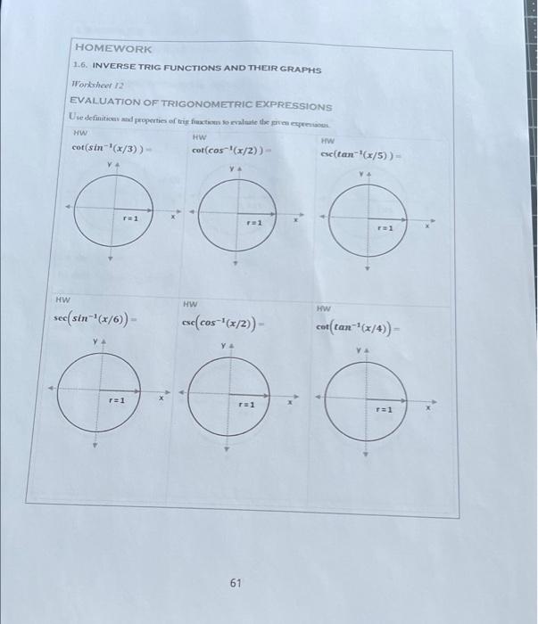 PPT Inverse Trig Functions - anderson5.net The angle you are looking for MUST give a POSITIVE answer for sine. Therefore, we must be in Quadrant I. + - Evaluate Evaluate: + - + - Evaluate: + - Evaluate: Evaluate: Evaluate: Evaluate: Evaluate: Not on the Unit Circle - MUST DRAW! 5 13 12 Homework Inverse Trig worksheet