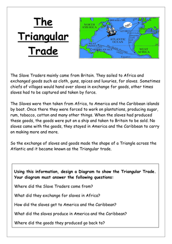 The Triangular Slave Trade Worksheets, Answers, lesson Plans The Triangular Slave Trade Worksheets, Answers, lesson Plans - Resources for History Teachers ... The Atlantic Slave Trade Click the PDF symbol for an instant download Get Full Site Access The Slave Trade - fully resourced teaching unit. What: A study of the slave trade from its origins in Africa through to abolition in 1865.