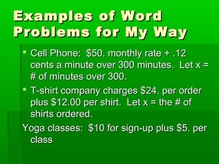 42 y mx b word problems worksheet
