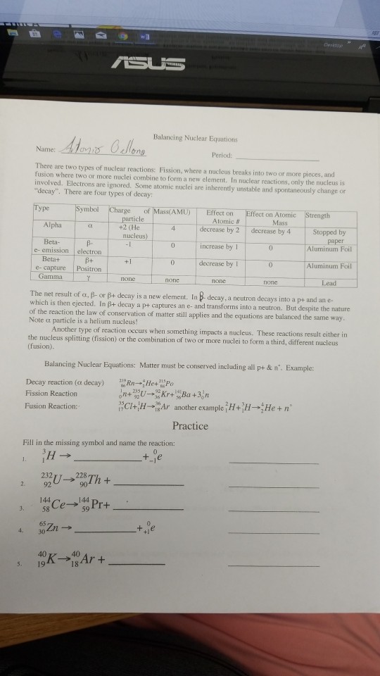 Balancing Nuclear Equations Worksheet Key - Tessshebaylo Balancing nuclear reactions worksheet list equations nidecmege answers chemistry chemical equation predict the chegg com promotiontablecovers name period there are reaction key can someone please answer all questions from 1 14 and predicting work practice. Make A Graph Of The Data Label All Axes And Title What Is Half Life Sodium 24 Explain How ...