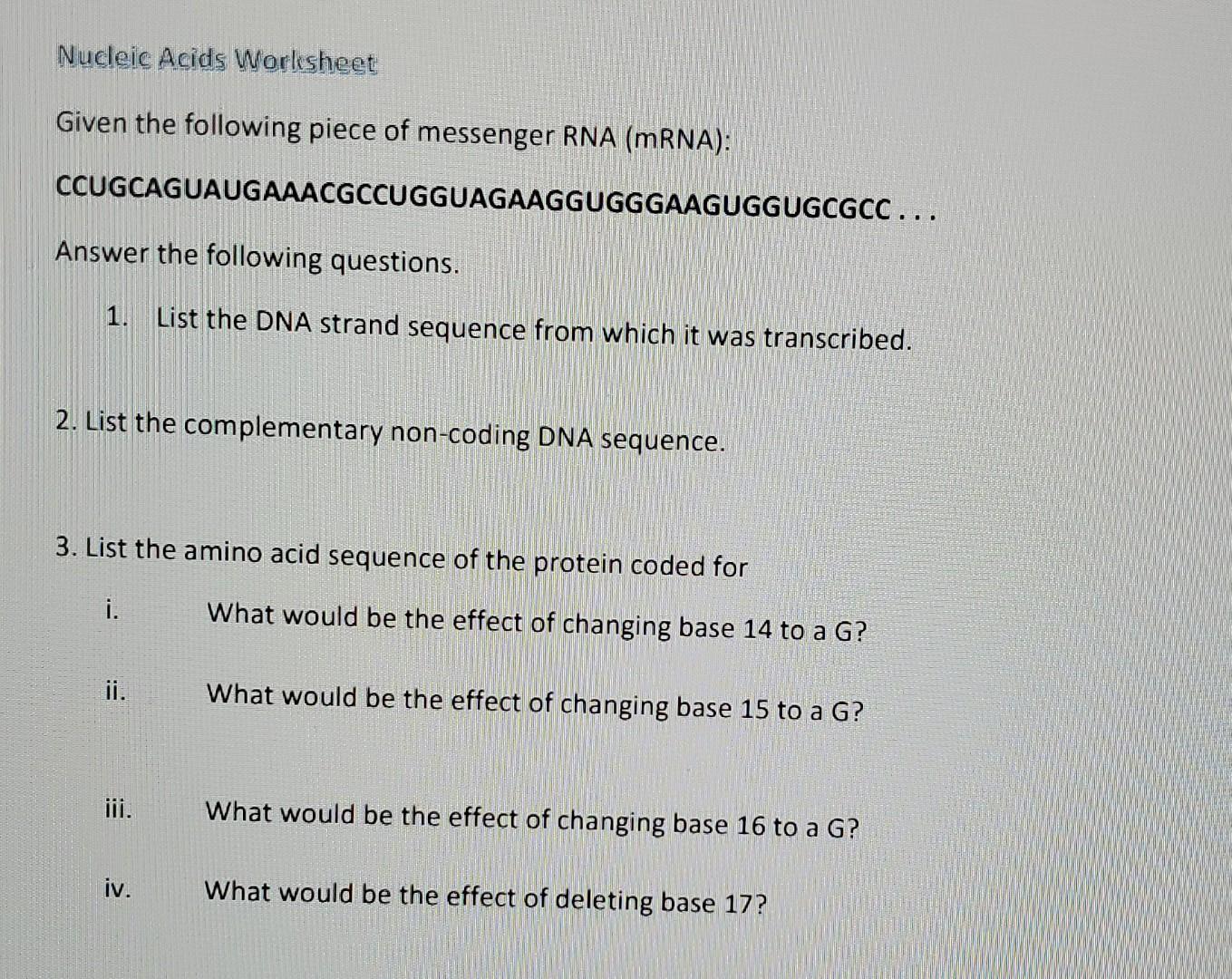 43 nucleic acids worksheet answers