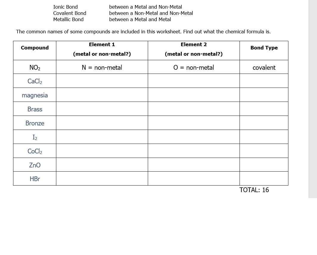 Types of chemical bonds worksheet answers cacl2