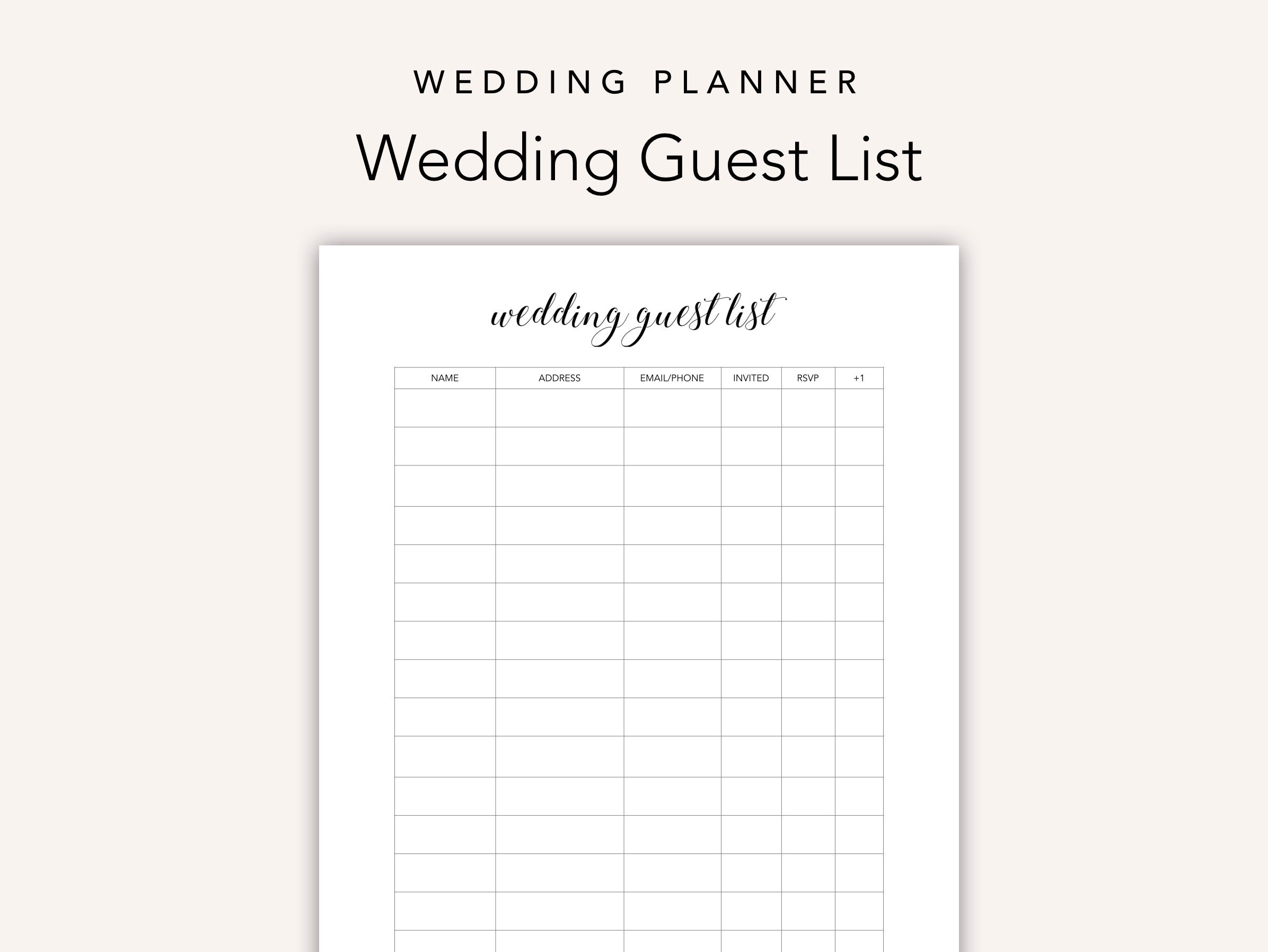 How to Create Your Wedding Guest List ♥ + Free Worksheet - WedSites Blog This will become your wedding 'wish list'. To make sure you don't forget anyone, sort your list into different categories so that you can easily identify where the guests are coming from. Common groups include close family members, extended family members, close friends, acquaintances and colleagues. Wedding Guest List Spreadsheet Wedding Guest List Wedding | Etsy Hong Kong This WEDDING GUEST LIST worksheet is designed to keep track of all your wedding attendees. The best part? This google sheet is categorized to make it easier to add or find wedding guests on the list. For example, there is a FREE printable guest list template | Customize online - 101 Planners This is a wedding guest list template that tracks the names, contact details, RSVP, and the number of people attending. There is a checklist to track when you send a Save the Date, Invitation, RSVP and Thank You Card. You can print many copies. You can change the background or delete it if you want a blank list. Customize & Print Wedding Planning Checklist - Plus Wedding Budget and Guest List Manager 1. Printable wedding checklist. Keep track of tasks with a printable wedding checklist. Simply download and print page 1 and page 2. 2. Wedding planning google doc. For easy access from any device and planning on the go, make a copy of this detailed wedding planning checklist (bonus: you'll get a wedding budget worksheet, guest list manager ...