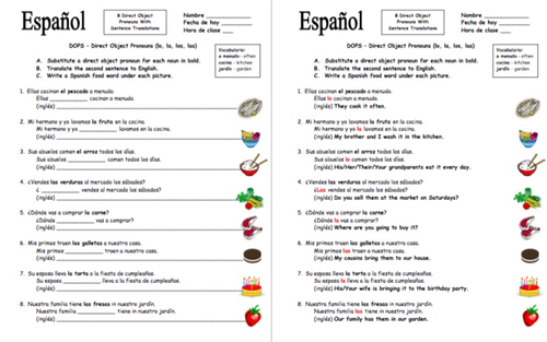 38 indirect object pronouns spanish worksheet pdf