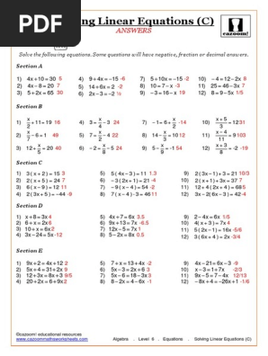 Linear Equations Worksheets | Download Linear Equations Worksheet PDFs ... Linear equations worksheets come with visual simulation for students to see the problems in action, an answer key that provides a detailed step-by-step solution for students to understand the process better, and a worksheet with detailed solutions. Download Linear Equations Worksheet PDFs