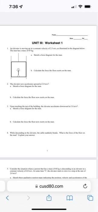 Constant velocity model worksheet 4 answers. The Moving Man - Position | Velocity | Acceleration - PhET WebLearn about position, velocity, and acceleration graphs. Move the little man back and forth with the mouse and plot his motion. Set the position, velocity, or acceleration and let the simulation move the man for you. Vectors and Projectiles Review - with Answers - Physics Classroom WebTRUE - For a constant launch angle, an increase in the initial velocity (v i) will increase the vertical velocity (v iy). This results in an increased time for the projectile to decelerate to 0 m/s as it rises towards its peak. So the projectile takes longer to get to the peak, longer to fall from the peak and overall is in the air for a longer time. Drawing Free-Body Diagrams - Physics Classroom Web4. A flying squirrel is gliding (no wing flaps) from a tree to the ground at constant velocity. Consider air resistance. A free-body diagram for this situation looks like this: Return to Questions. Return to Info on Free-body diagrams. Return to on-line Force Description List . 5. A rightward force is applied to a book in order to move it ... Graphs of Motion - Practice – The Physics Hypertextbook WebThe third and fourth methods use the other two equations of motion. Since these rely on our choices for the final velocity, multiple valid answers are possible. Let's say we use the velocity calculated from the slope of a "tangent" with a value of −60 m/s and and the velocity-time relationship, a.k.a. the first equation of motion. Then…
