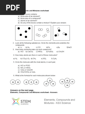 Elements compounds mixtures worksheet answers