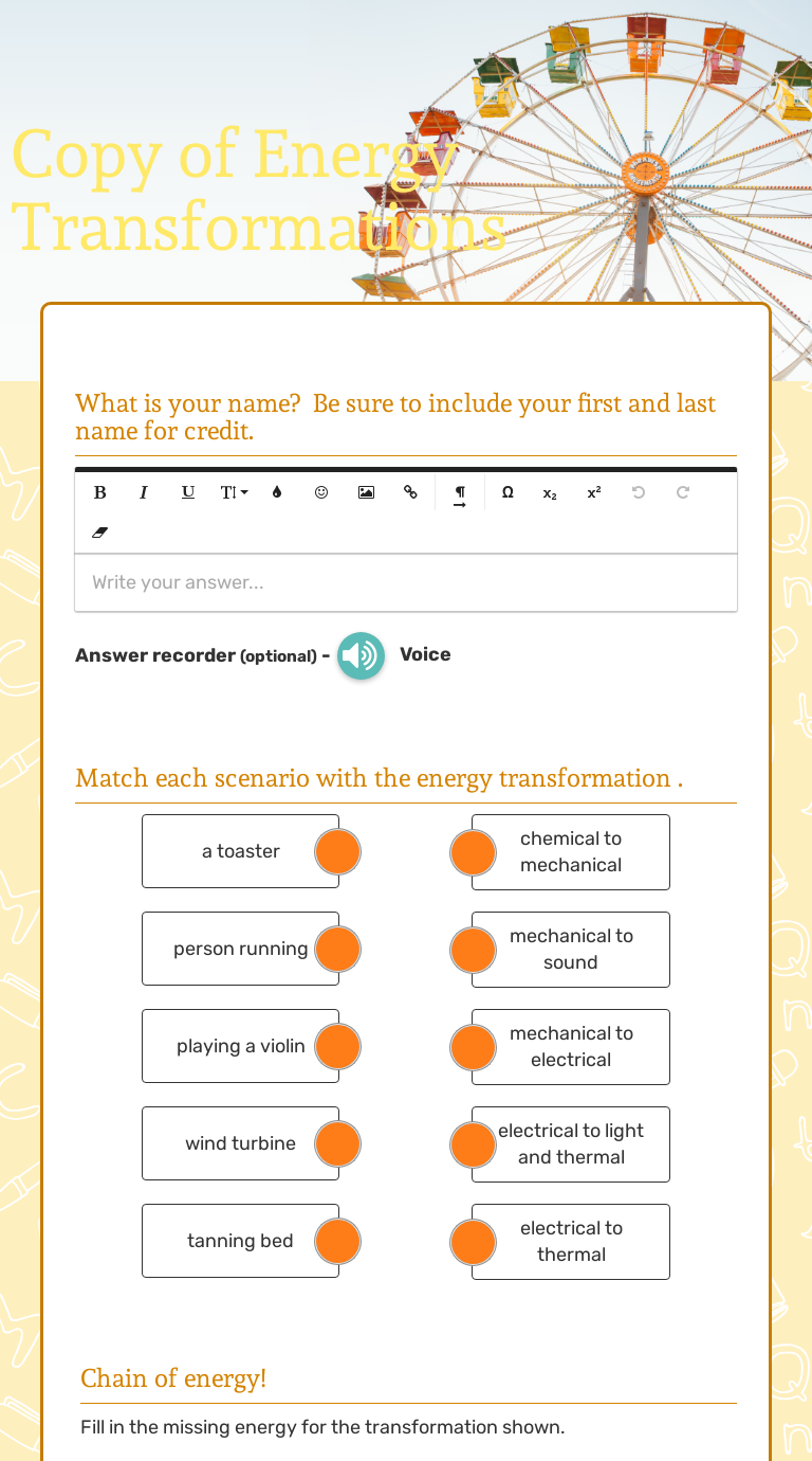Energy transformation worksheet answers