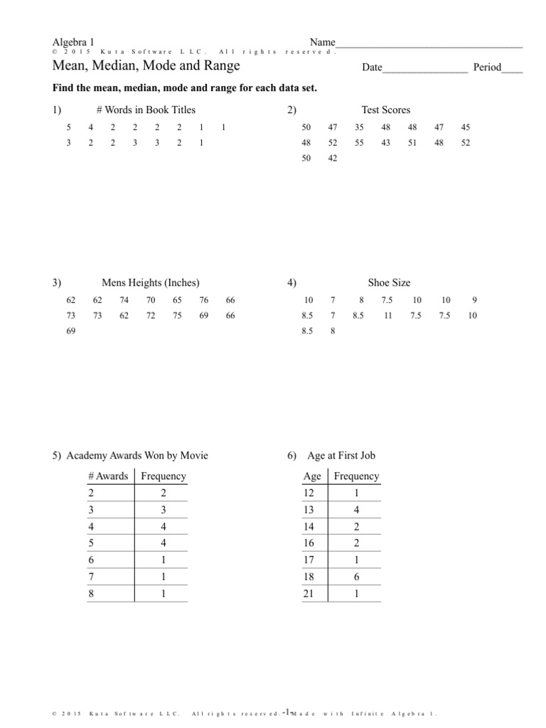 Mean Mode Median Worksheets | Mean Mode Median and Range ... Mean Mode Median Worksheets Mean, Mode, Median, and Range Worksheets. Here is a graphic preview for all of the Mean, Mode, Median, and Range Worksheets.You can select different variables to customize these Mean, Mode, Median, and Range Worksheets for your needs. The Mean, Mode, Median, and Range Worksheets are randomly created and will …