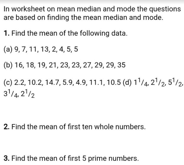 Mean, Mode and Median Math Worksheets for Grade 10 Mean, Mode and Median Math Worksheets for Grade 10. Wizert is the first ever place to find complete Math worksheets for Mean, Mode and Median - Grade 10. All worksheets are collected here sequentially for your reference. Our expert tutors have provided them in a step-by-step manner so anyone can understand them with ease.