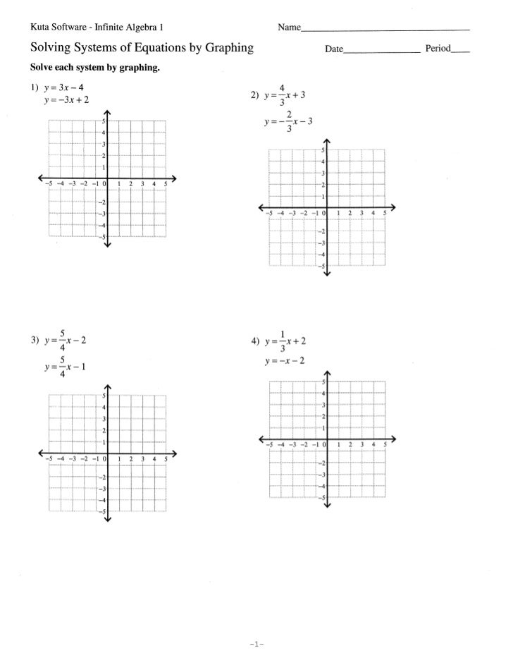 Solving Systems of Equations by Graphing Kuta Software - Infinite Algebra 1. Name___________________________________. Period____. Date________________. Solving Systems of Equations by Graphing.